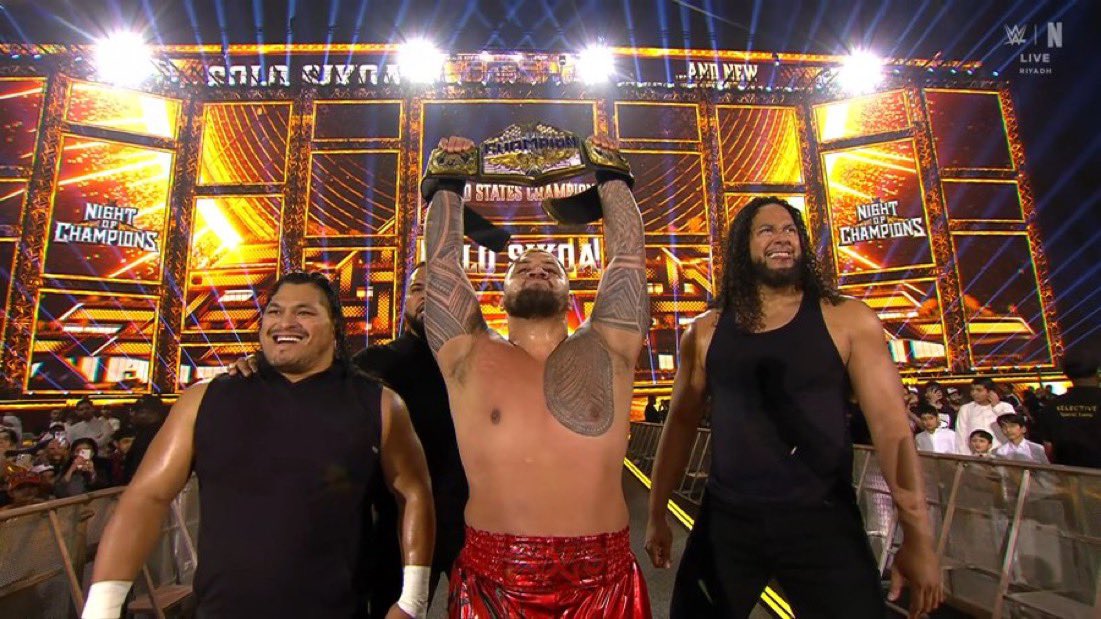 At Night of Champions, Sikoa pinned Jacob Fatu to become United States Champion for the first time thanks to a ton of interference. JC Mateo came out first, but was taken out quickly. Tonga Loa, who had been out of action since Survivor Series with an injury, returned next but soon after was also taken out. Fatu had Sikoa pinned with a moonsault, but that was when Hikuleo made his WWE debut, chokeslamming Fatu through the announce table. Sikoa then pinned Fatu with the Samoan spike for the win.