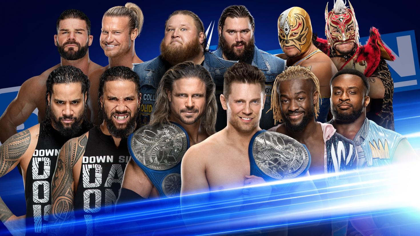WWE has announced that SmackDown Tag Team Champions The Miz & John Morrison, The New Day, The Usos, Dolph Ziggler & Robert Roode, The Lucha House Party, and Heavy Machinery will face off in a gauntlet match on SmackDown tomorrow night. Those are the teams that will face off for the SmackDown Tag Team titles in an Elimination Chamber match at Sunday’s pay-per-view.
