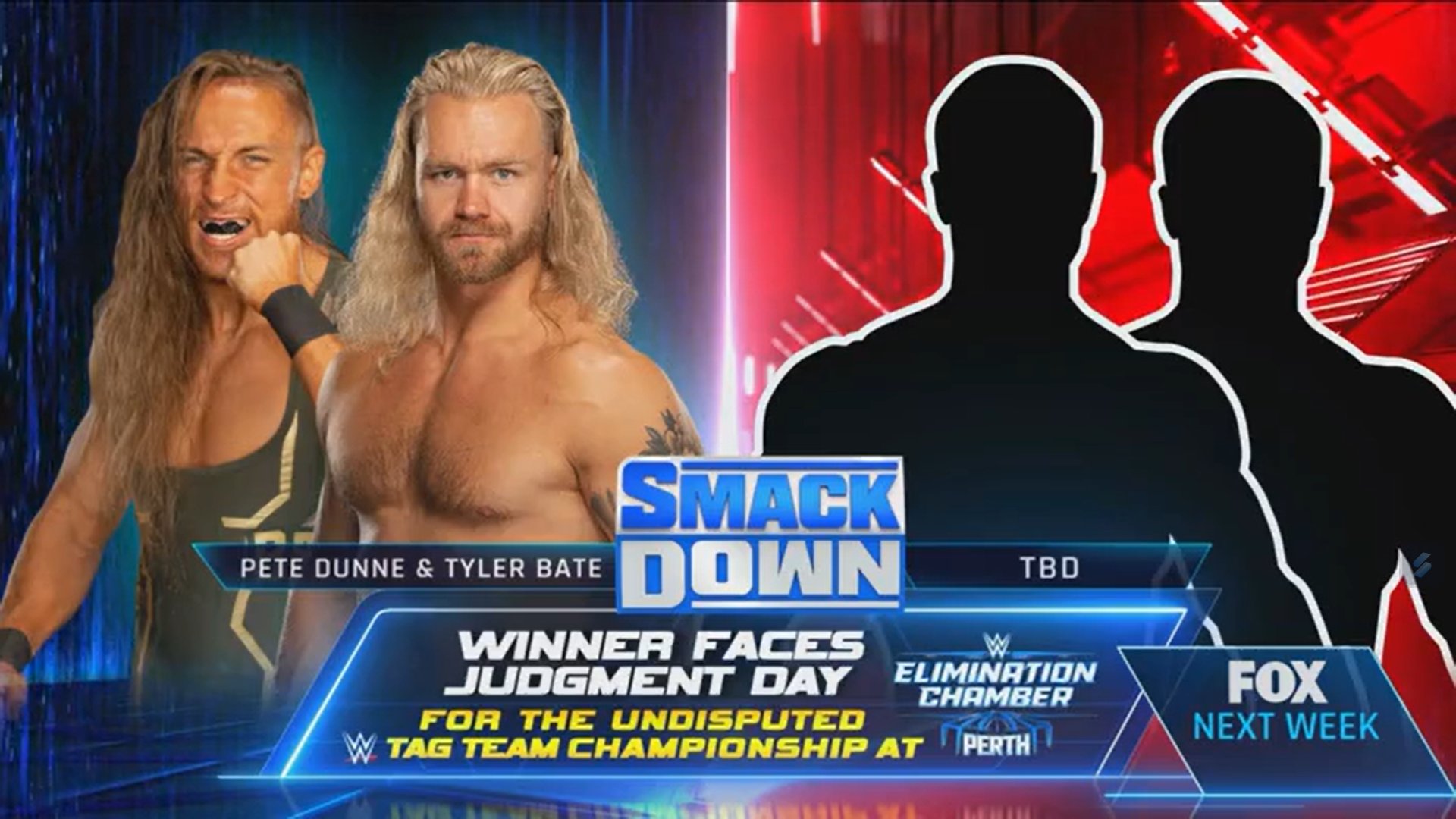 Dunne & Bate will face the winners of a four-way on Monday’s Raw to determine which team will challenge The Judgment Day for the Undisputed WWE Tag Team Championship at Elimination Chamber on Saturday, February 24. The four teams for the Raw match have yet to be announced.