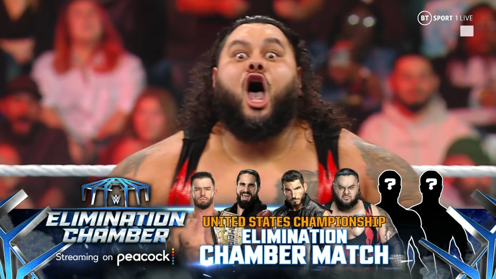 - Men’s Elimination Chamber match for United States title: Austin Theory (c) vs. Seth Rollins vs. Bronson Reed vs. Johnny Gargano vs. ??? vs. ???