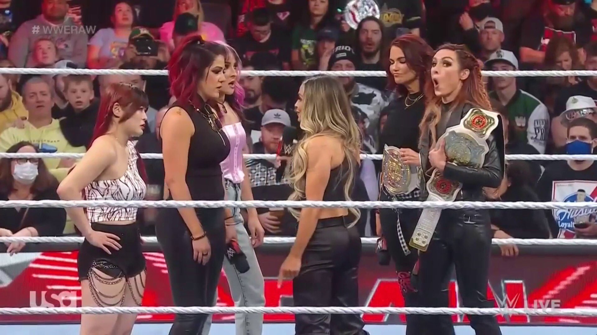 The groundwork for the match was laid on last week’s Raw when Stratus helped Lynch and Lita win the Tag titles from Kai and SKY. On this week’s Raw, Stratus issued a challenge to Damage CTRL on her team’s behalf, and Bayley accepted for her side.