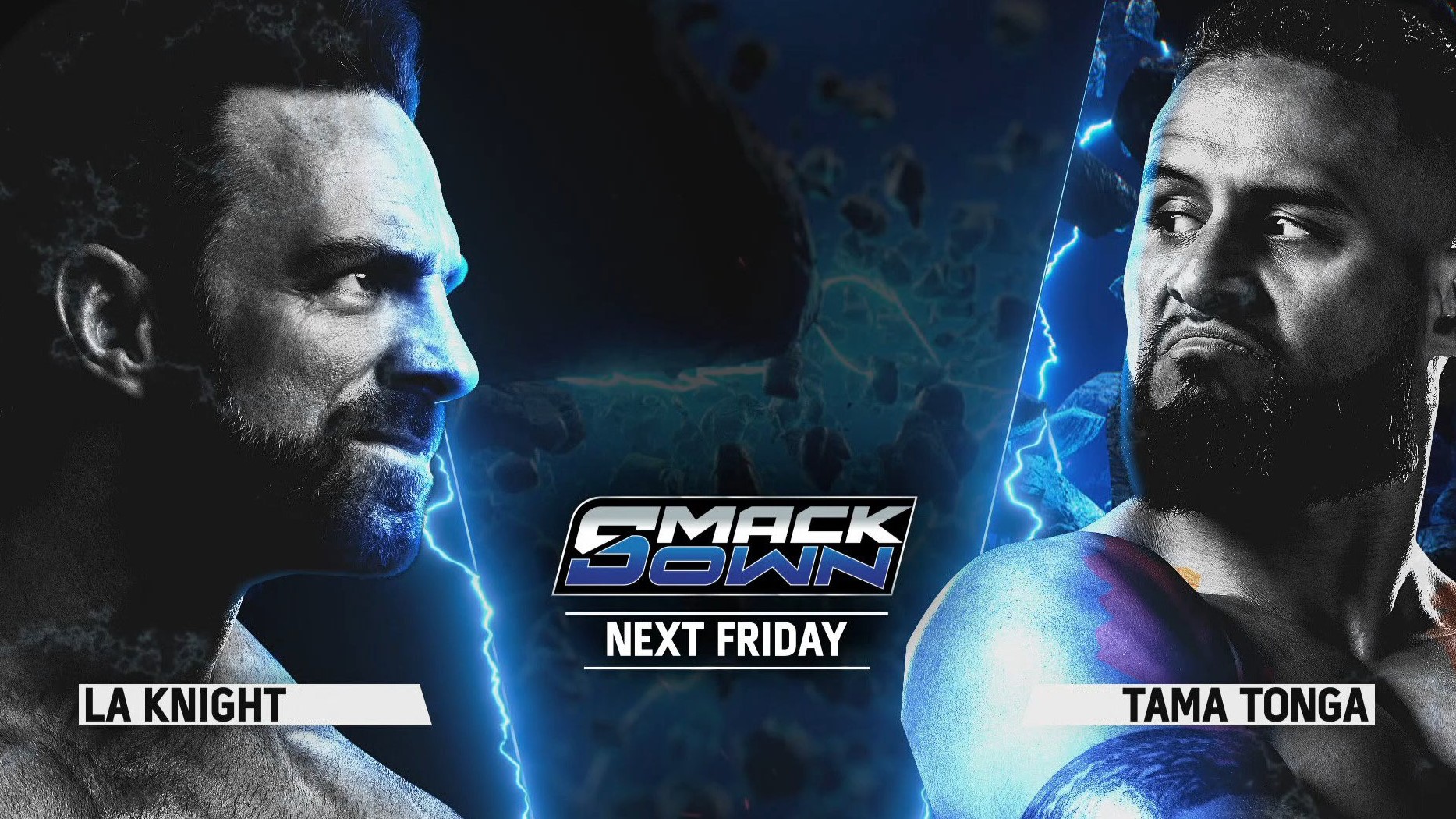 LA Knight will face The Bloodline’s Tama Tonga on next week’s show after a confrontation on Friday’s SmackDown. Knight and Jacob Fatu brawled in the ring, with Tama Tonga then coming through the crowd to aid in the attack. Braun Strowman made the save and cleared the ring with Knight, setting up Strowman vs. Fatu at Saturday Night’s Main Event, and Knight vs. Tonga on next week’s SmackDown.