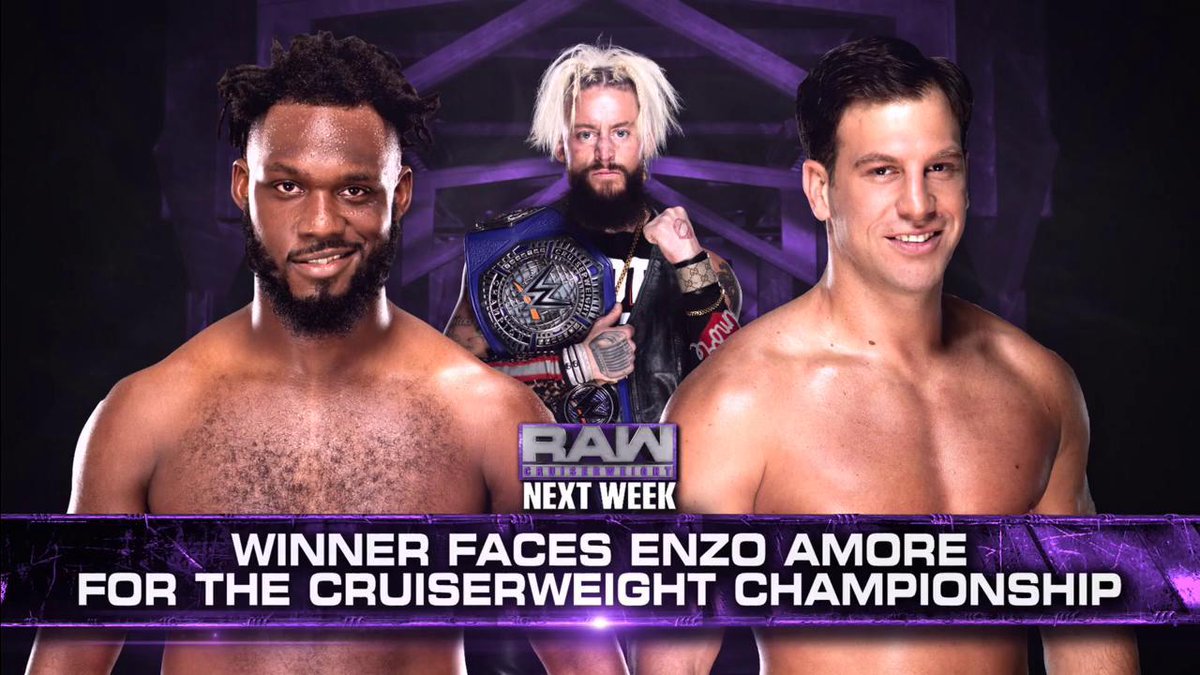 A cruiserweight number one contender’s match and Braun Strowman vs. Kane are set for next week’s episode of Raw.