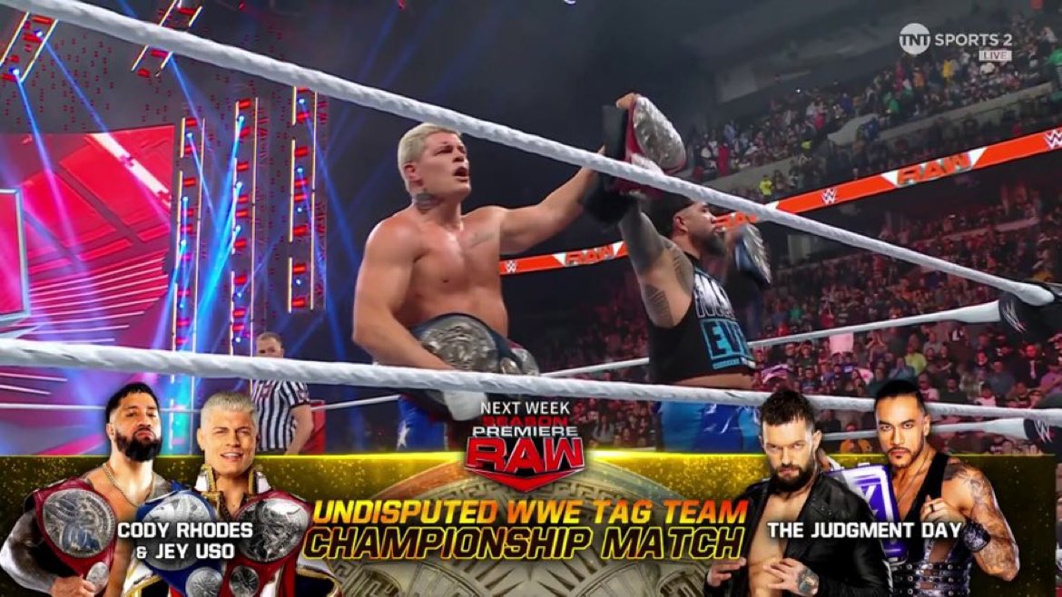 - Undisputed WWE Tag Team Championship: Cody Rhodes & Jey Uso defend against Damian Priest & Finn Balor of The Judgment Day