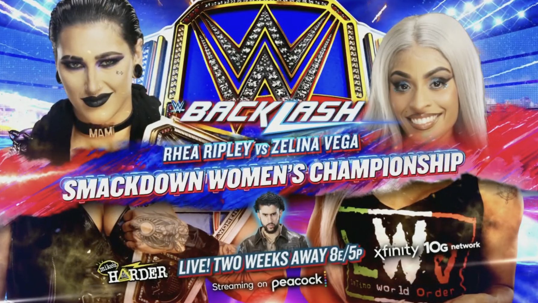 - SmackDown Women’s Championship: Rhea Ripley (c) defends against Zelina Vega
