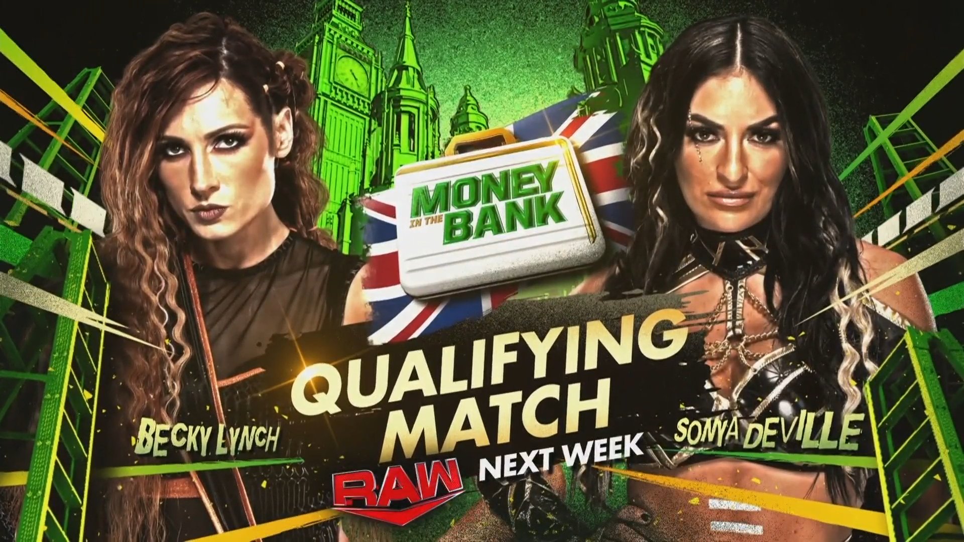 - Women’s Money in the Bank qualifying match: Becky Lynch vs. Sonya Deville