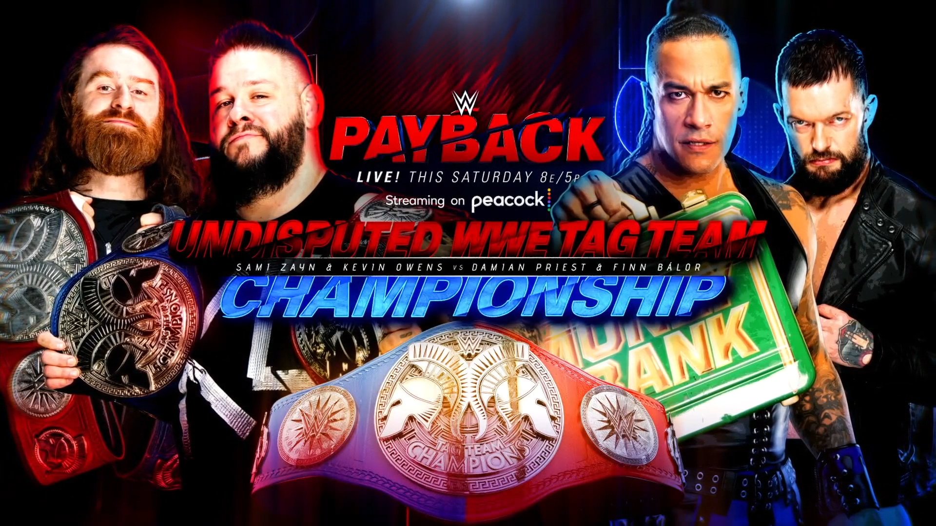 As revealed during Monday’s Raw episode, Kevin Owens & Sami Zayn will defend the Undisputed Tag titles against Finn Balor & Damian Priest of The Judgment Day on the Saturday, September 2 Payback event in Pittsburgh, Pennsylvania. It was announced later in the show that the match will be a Steel City Street Fight.