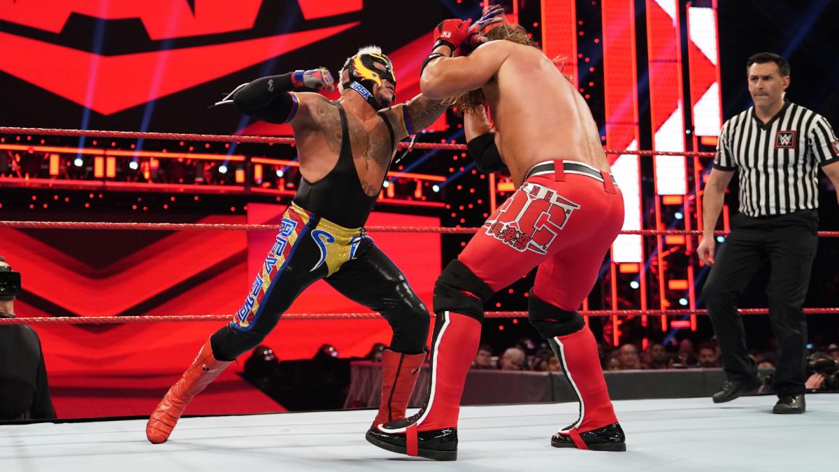 Styles vs. Carrillo had originally been advertised for the Raw where Mysterio won the US title. After The O.C. attacked Carrillo, Mysterio defeated Ricochet, Orton, and Drew McIntyre in a fatal four-way number one contender’s match. Mysterio then immediately got his title shot against Styles.