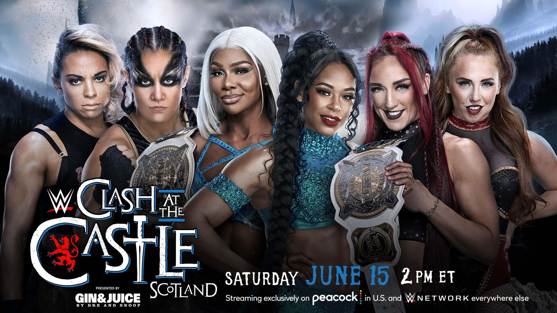 Clash at the Castle streams live on Peacock/WWE Network on Saturday, June 15. The main card will begin at 2 p.m. Eastern time. The updated card for the event: