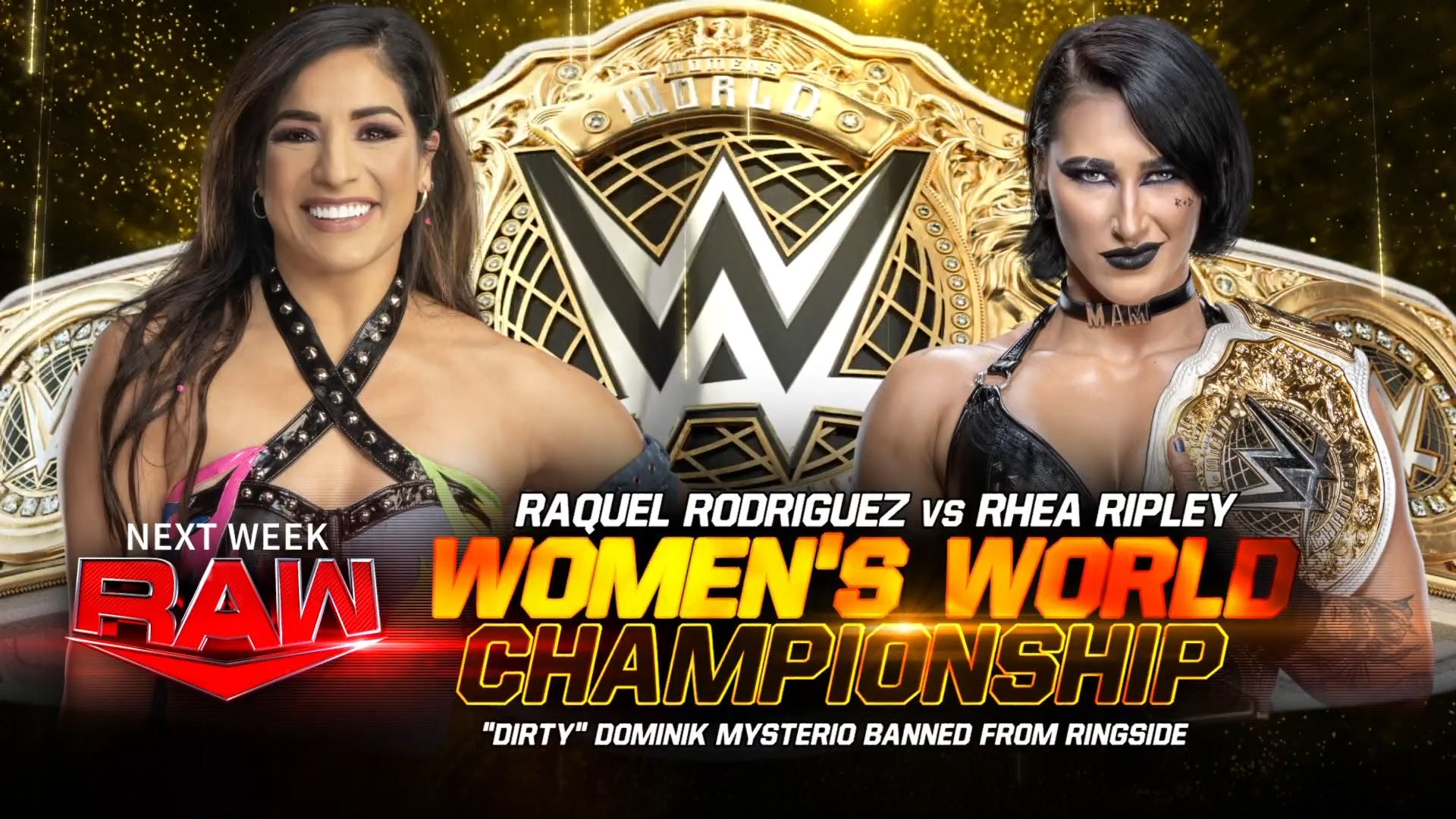 As revealed during this week’s Raw, Rhea Ripley will defend the Women’s World title against Raquel Rodriguez on next week’s show. Ripley’s Judgment Day cohort Dominik Mysterio will be banned from ringside during the match.