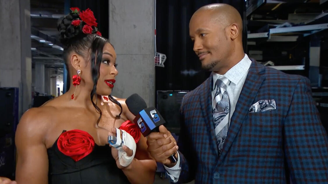 In her segment with interviewer Byron Saxton, Belair’s left hand was wrapped, several fingers were taped together, and she had a splint on her left ring finger. No timetable was stated for Belair’s return, but commentator Joe Tessitore indicated that the three-time Women’s Champion will be on the shelf for some time.