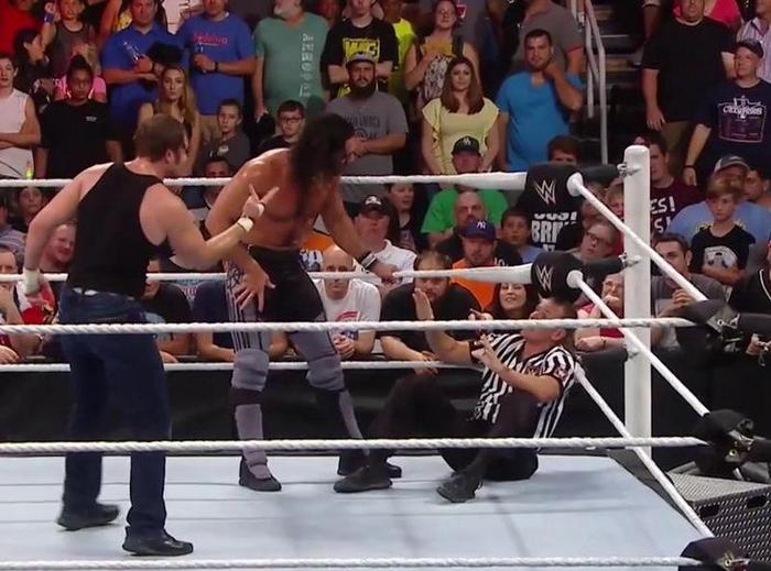 Instead, he just remained seated in the corner while everyone else walked around looking confused. Later on the network, it was announced the match ended with a double pin and declared a draw with Ambrose still champion after the referee watched a replay.