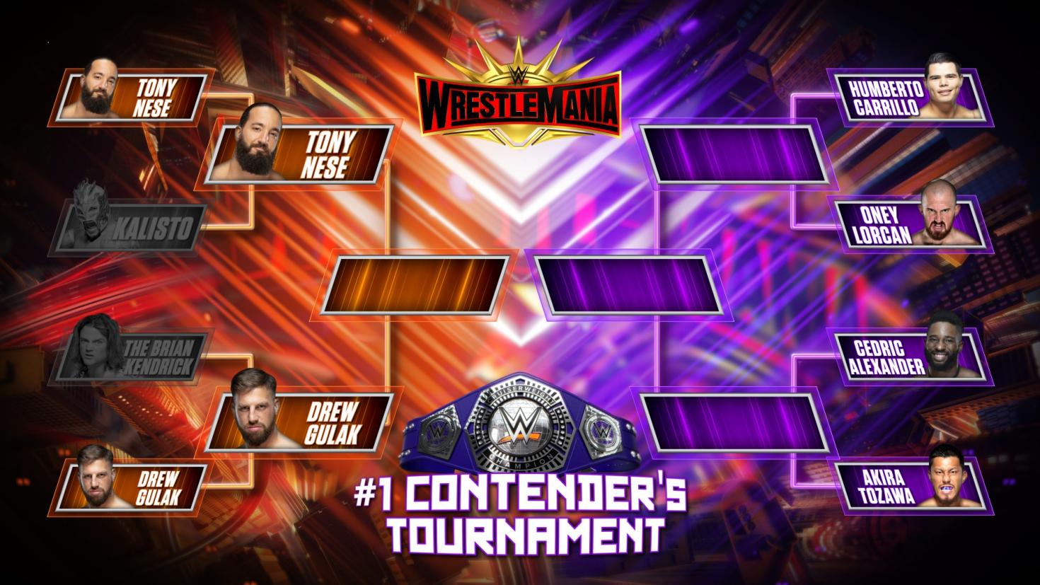 The left side of the bracket has Tony Nese vs. Drew Gulak in the semifinals. The tournament began on this Tuesday’s episode of 205 Live, with Nese and Gulak both winning their first round matches. Nese defeated Kalisto, while Gulak defeated Brian Kendrick.