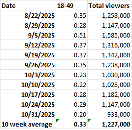 Note: Starting on October 1, Nielsen switched to the new Big Data + Panel ratings measurement system, which has resulted in lower-than-usual ratings for most wrestling shows.