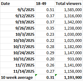 Note: Beginning on October 1, Nielsen started using the Big Data + Panel reporting method which has resulted in severe ratings declines for most wrestling shows.