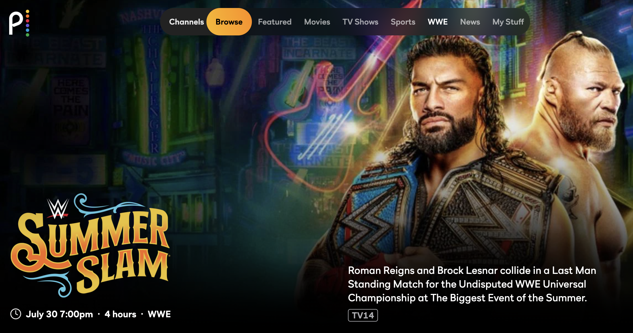 WWE SummerSlam listed with TV-14 rating on Peacock