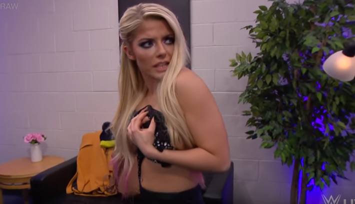 WWE’s promise of change appears to include taking the on-screen product in a slightly more risqué direction. On back-to-back nights, that was evidenced by angles involving Alexa Bliss and Mandy Rose. A rather inexplicable segment on last Monday’s Raw saw someone playing a random stagehand walk into Bliss’ dressing room after she didn’t answer him when he knocked and said he was coming in. WWE focused on the exposed back of Bliss as she covered herself up. The segment didn’t fit in with the episode, didn’t do anything to advance Bliss’ character, and — aside from making a joke about Netflix’s “Bird Box” — was only there to have something semi-edgy on the show.