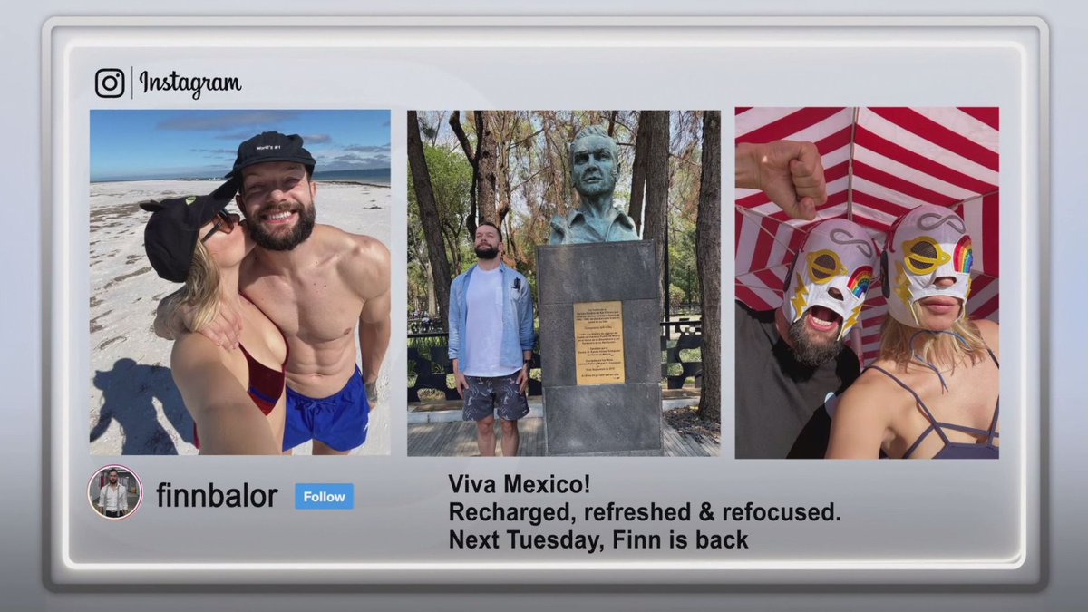 “Viva Mexico! Recharged, refreshed & refocused. Next Tuesday, Finn is back,” Balor wrote on social media.