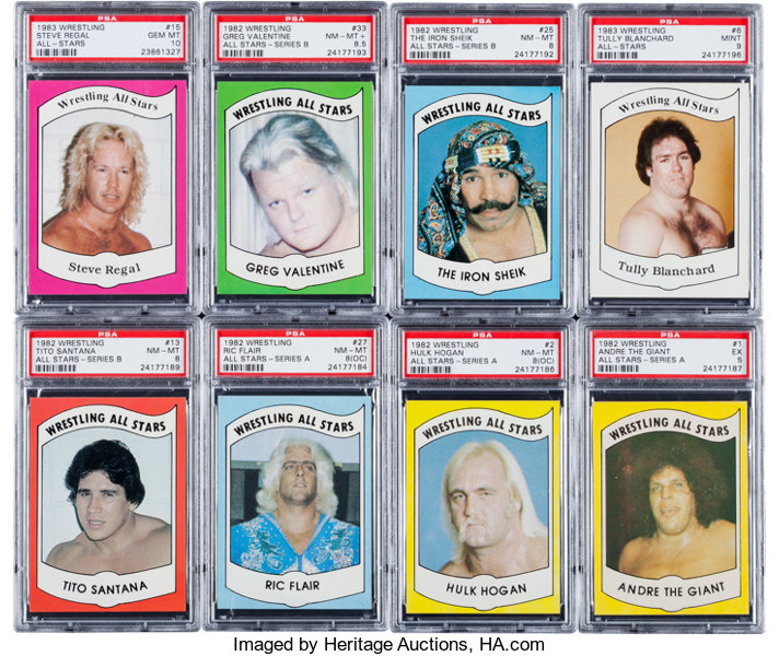 Mike and I talk about the rapid rise in prices for Steve Austin and The Rock wrestling rookie cards, a University of Miami Dwayne Johnson rookie card and what he sees in potential growth in both MMA and wrestling cards. We also delve into a 1982 wrestling set (pictured above) which is going for insane amounts of money.