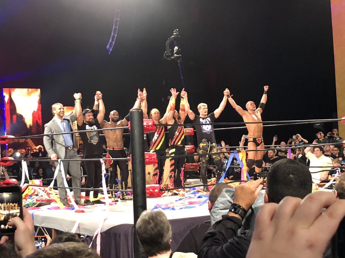 Matt closed the speech by saying they will be back in New York City. The Young Bucks, Cody, Page, Kazarian, Sky, Daniels, and Scurll all raised each other’s arms.