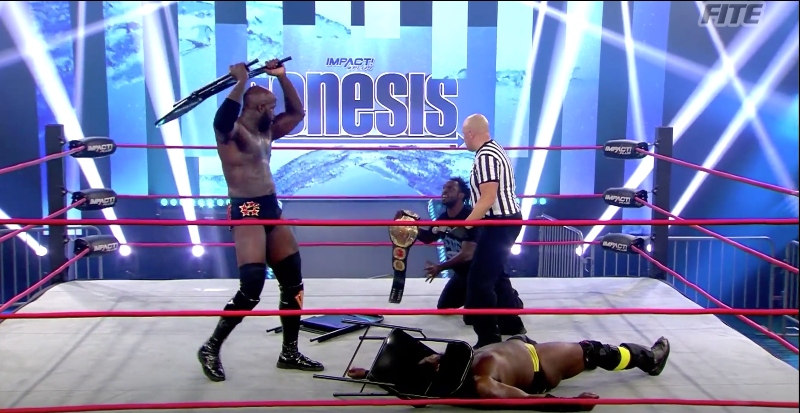 In a twist, Moose earned a future shot at Impact World Champion Rich Swann despite losing to Willie Mack in an “I Quit” match at Saturday’s Genesis on Impact Plus.