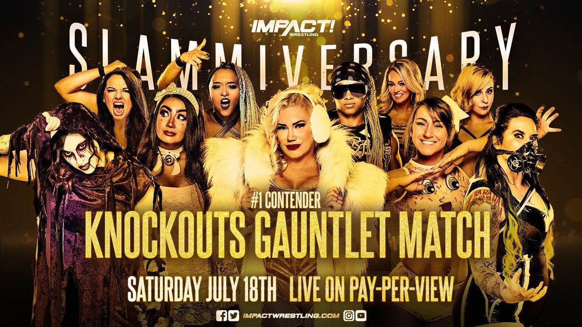 Impact Wrestling announced today that Rosemary, Nevaeh, Susie (Su Yung), Kiera Hogan, Taya Valkyrie, Tasha Steelz, Alisha Edwards, Kylie Rae, Kimber Lee, and Jessicka Havok will face off in a gauntlet match at Slammiversary. The winner will get an upcoming shot at the Knockouts Championship.