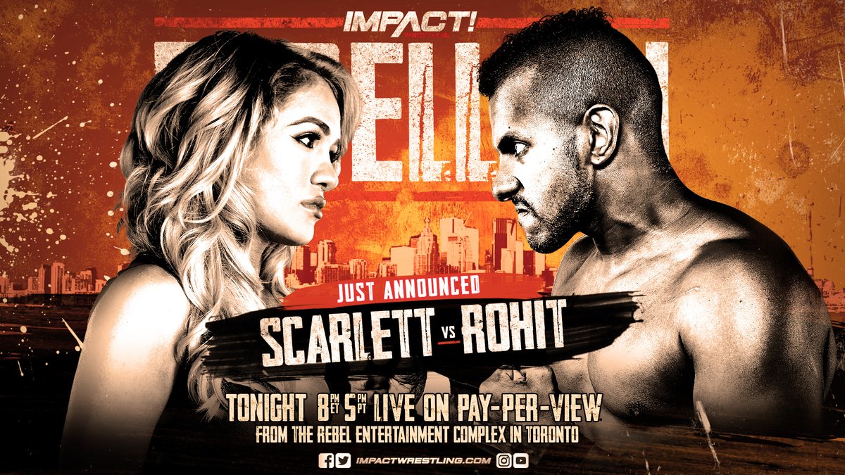 Scarlett Bordeaux will be facing Rohit Raju of the Desi Hit Squad in an intergender match tonight. It was originally announced that Bordeaux would be hosting a live Smoke Show segment on PPV, but Impact noted that Bordeaux vs. Raju is replacing that.