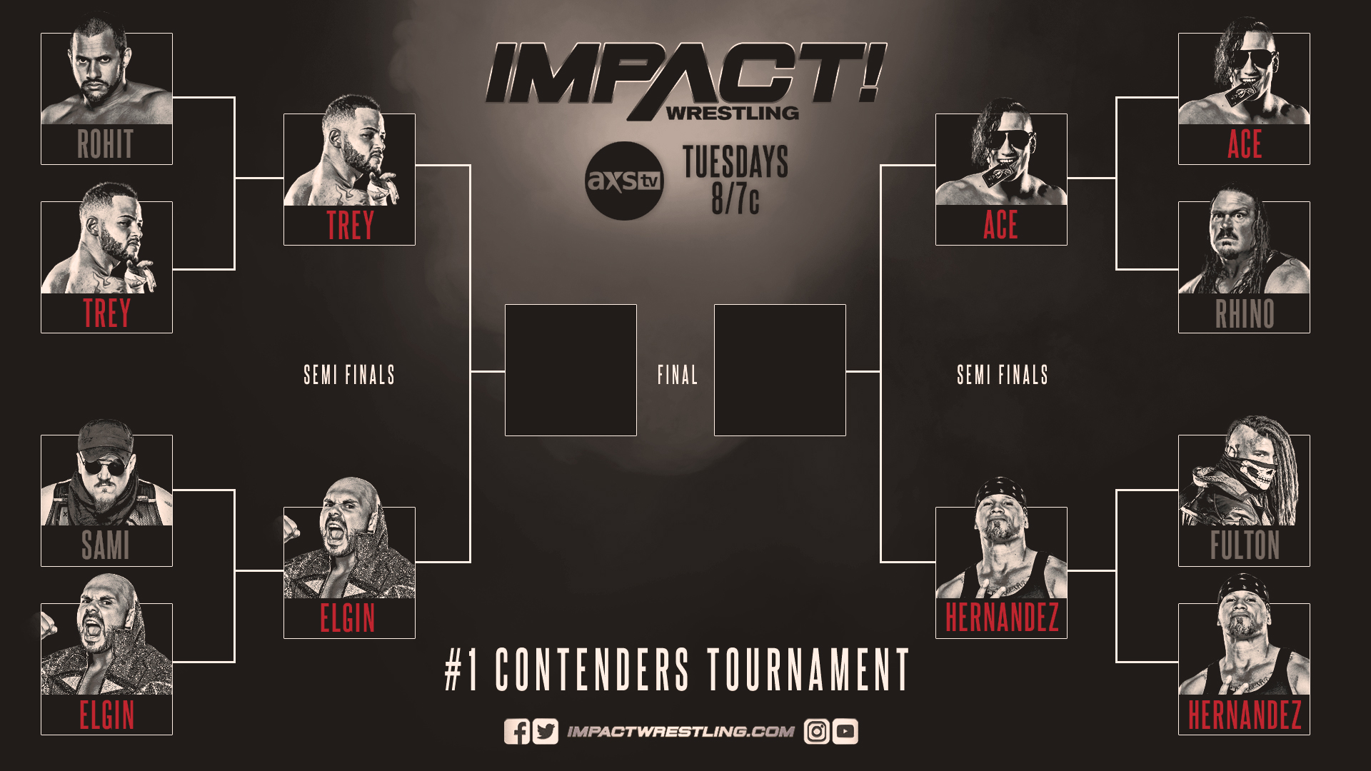 The promotion has announced that both semifinal matches will air on next Tuesday’s episode of Impact. They are Michael Elgin vs. Trey Miguel and Hernandez vs. Ace Austin.