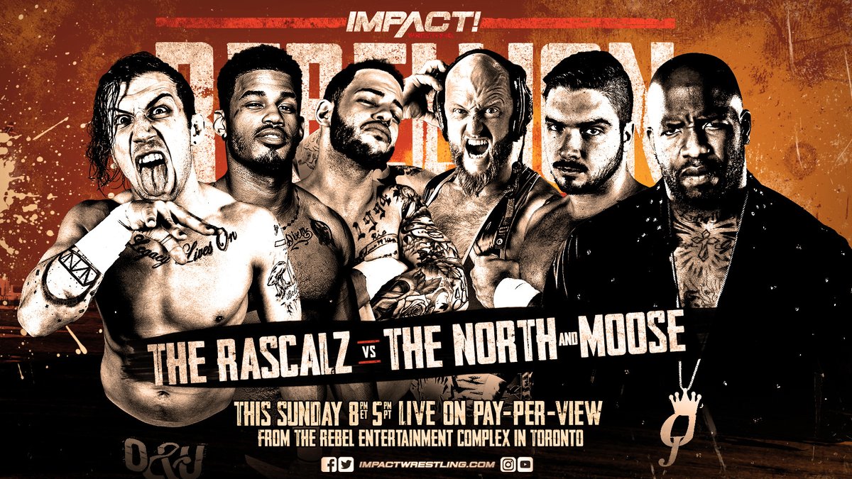 Moose & The North (Josh Alexander & Ethan Page) will team against The Rascalz (Dezmond Xavier, Zachary Wentz & Trey Miguel) at the PPV. It’s taking place at the Rebel Entertainment Complex in Toronto, Ontario, Canada tomorrow (April 28).