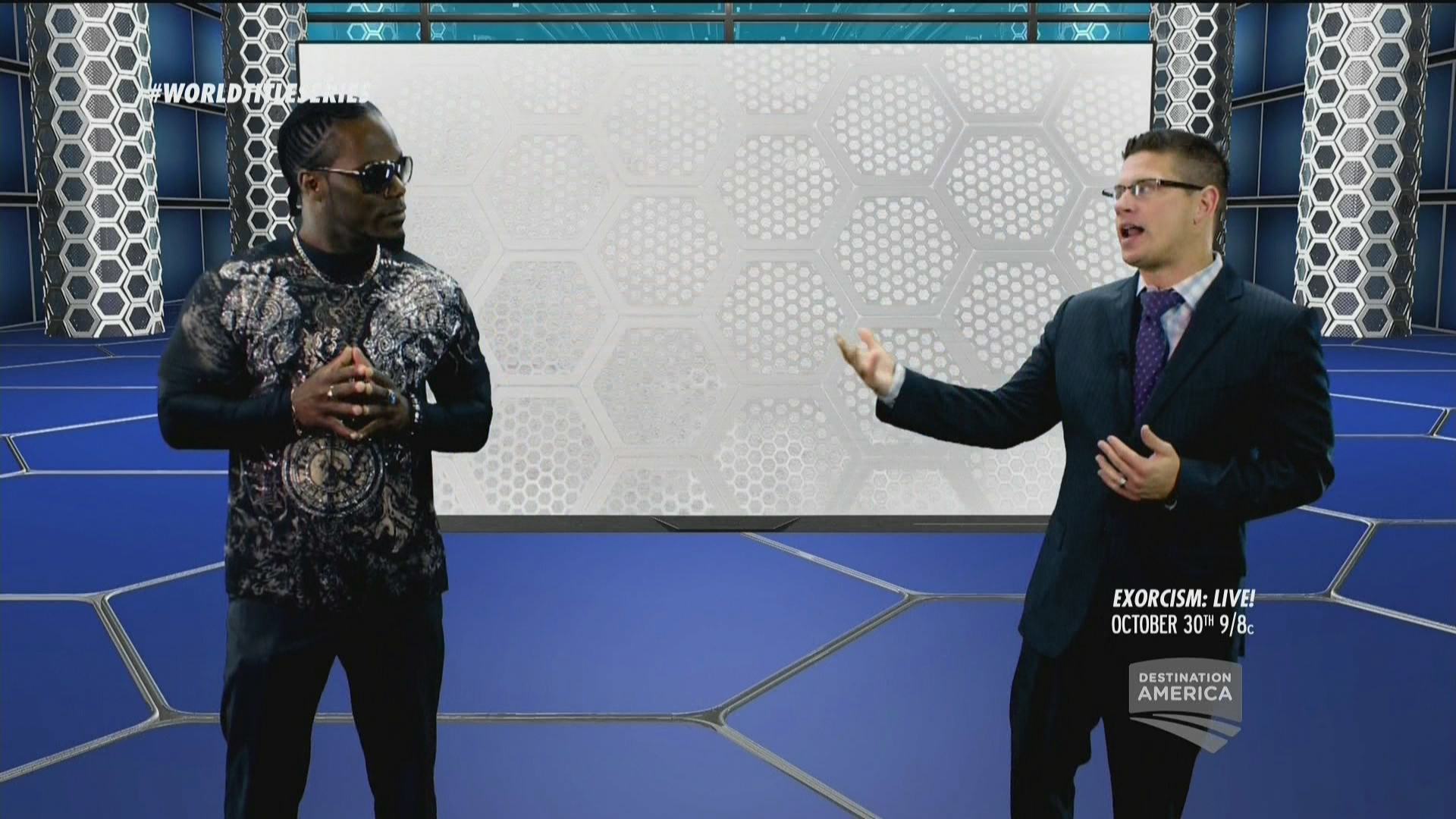 Pope and Josh talk about Group Champions, resulting in more shilling of EC3 by Josh. Josh hypes up Tyrus winning the Bound For Gold match and we hear from him for a second. He appears to have aged a decade since BFG and says that if EC3 wins, things will get interesting. EC3 is out to face Aries. Josh says that EC3 is still unpinned, which is true. Aries comes out with Thea Trinidad and Josh mocks nerds who point out that Aries lost a loser leaves town match. He’s back because he’s the smartest wrestler in the world and Josh says that Thea was once known as Rosita in TNA.