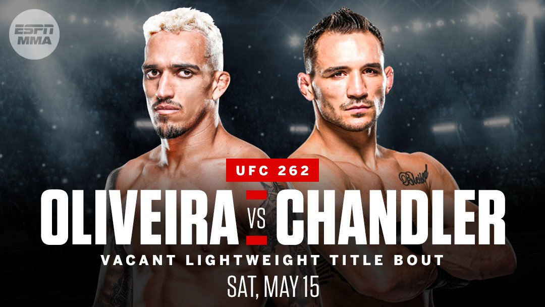 Shortly thereafter, ESPN reported that former Bellator lightweight champion Michael Chandler and the streaking Charles Olivera will battle for the vacant title at UFC 262 on May 15th, location TBA.