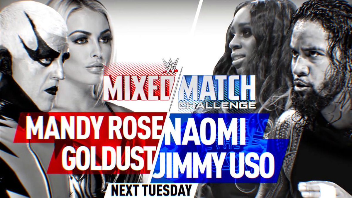 That announcement was made towards the end of last night’s episode. Goldust & Rose will be taking on Jimmy Uso & Naomi next Tuesday, and the winning team will go on to face Braun Strowman & Alexa Bliss in week eight of the tournament.
