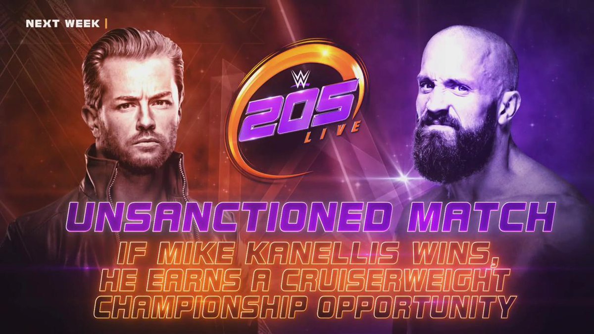 On last night’s episode, it was announced that Drake Maverick vs. Mike Kanellis will take place on 205 Live next Tuesday and will have an unsanctioned stipulation.