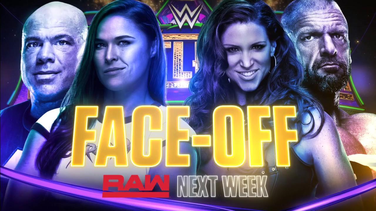Triple H and Stephanie McMahon will confront Ronda Rousey and Kurt Angle next week on Raw, just days before their mixed tag team match at WrestleMania.