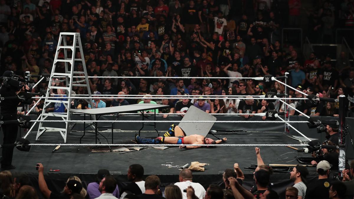 Cole won the first fall when Gargano got disqualified for using a steel chair, Gargano won the second fall, and the stipulation for the third was a steel cage filled with weapons that had barbed wire on top. The finish was Gargano and Cole both crashing through a table from the top of the cage. Cole covered Gargano to retain the NXT title.