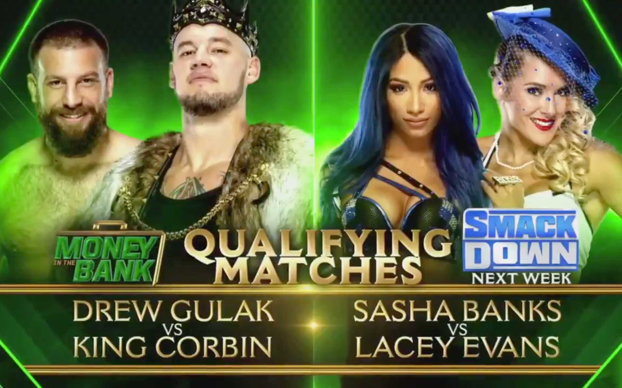 WWE has announced two Money in the Bank qualifying matches for next week’s episode of SmackDown. Sasha Banks and Lacey Evans will face off to determine who will be in the women’s Money in the Bank ladder match, and Drew Gulak and Baron Corbin will face off to determine one of the spots for the men’s ladder match.