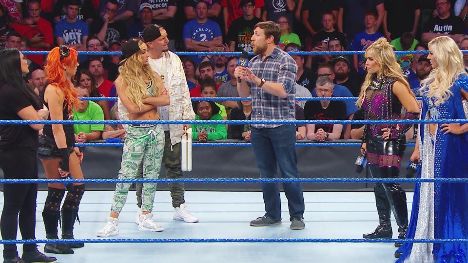 As was announced beforehand, Daniel Bryan returned on tonight’s show to make a ruling about the controversy surrounding Sunday’s match. The storyline led to Bryan forcing Carmella to relinquish her briefcase and making the rematch official for next week.