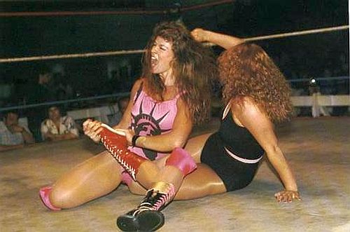 We go to a match with Richter and Peggy Lee. One thing is clear right away. Both Richter and Peggy Lee look like Flair and Steamboat compared to today’s WWE divas. Lee is a natural-looking woman. She’s not tan or thin. Richter is tan and thin, but her attractiveness is secondary to her athleticness.