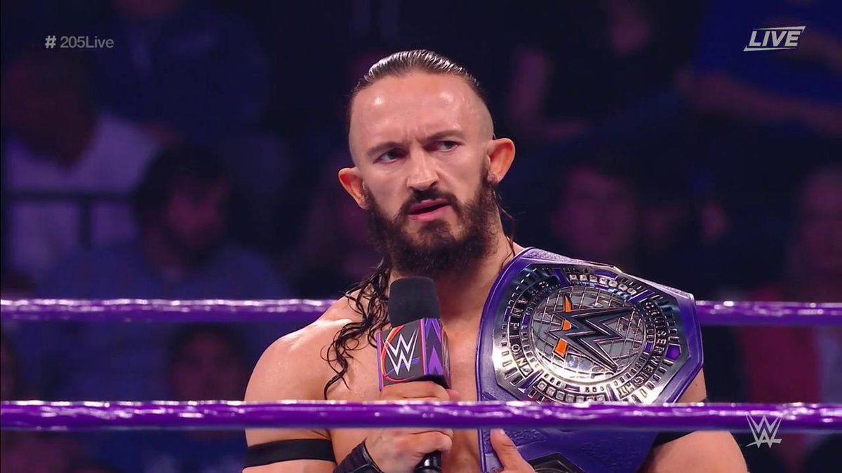 Neville said that everyone wants to see his reign as King of the Cruiserweights end on Sunday, so tonight he’s going to give people what they want — a 205 Live without Neville.