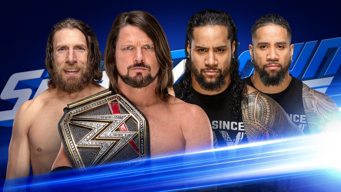 WWE Champion AJ Styles & Daniel Bryan take on The Usos in a rematch. Last week, The Usos were victorious when Jey pinned Bryan. Bryan and Styles are set to collide at Crown Jewel but first must team up against The Usos again.